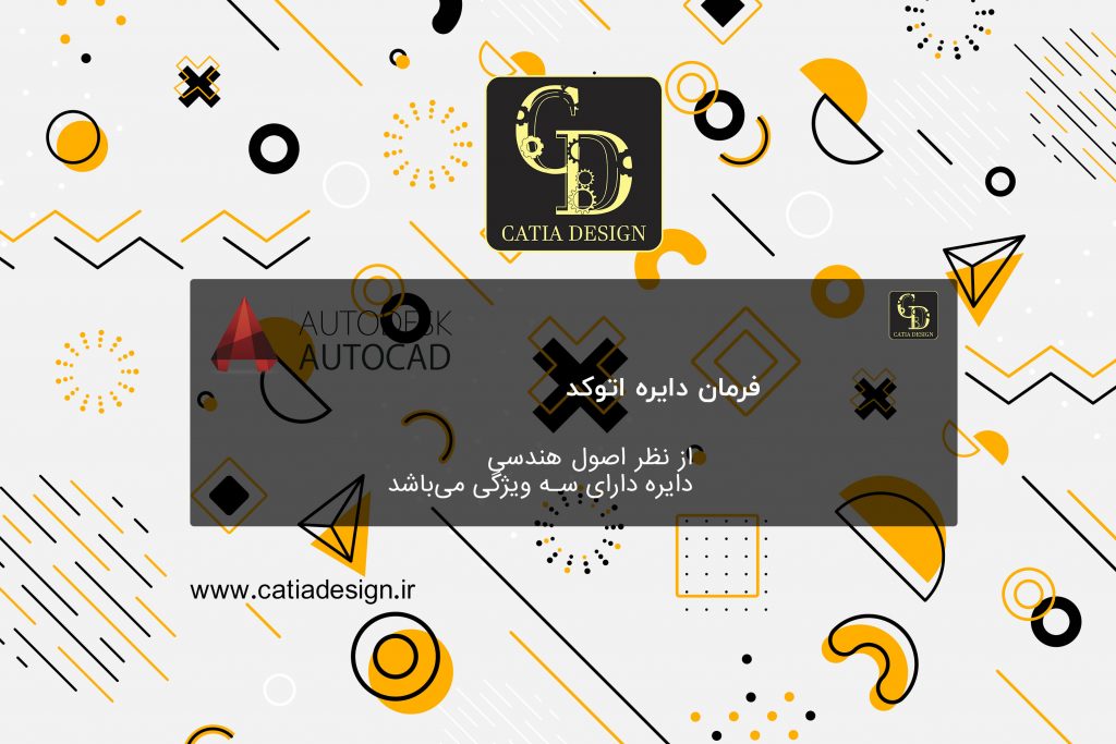 از فرمان دایره circle اتوکد برای ترسیم دایره استفاده میشود، از نظر اصول هندسی دایره دارای سه ویژگی میباشد.