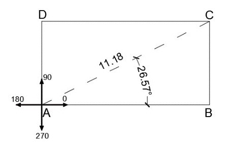 طول قطر AC عدد 18/11 و زاویه پارهخط AB نسبت به جهت مثبت محور Xها 57/26 درجه میباشد.