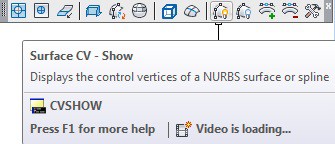 اعلان (Select NURBS surfaces or curves to display control Vertices) به معنای (سطوح از نوع NURBS را برای نمایش رئوس کنترلی انتخاب کنید) میباشد.