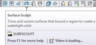 حروفSurfsculpt را در خط فرمان، در قسمت Type a command تایپ کرده، سپس کلید Enter را میفشاریم.