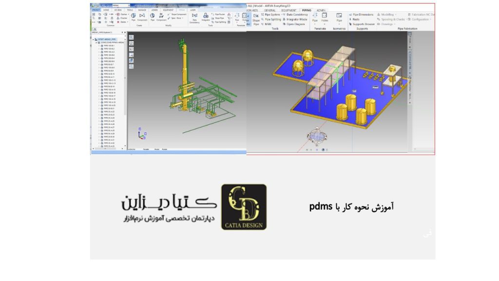 نرمافزار PDMS یکی از پرکاربردترین ابزارها در طراحی پایپینگ و مدلسازی سهبعدی تأسیسات صنعتی است. این نرمافزار به مهندسان کمک میکند تا با دقت بالا سیستمهای لولهکشی، مخازن و تجهیزات صنعتی را طراحی کنند. در کنار PDMS، نرمافزار کتیا دیزاین نیز در طراحی قطعات و تحلیل سازهها استفاده میشود.